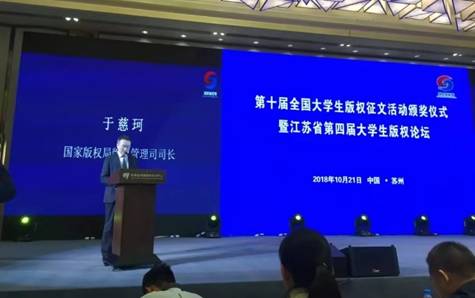 本届征文活动共有参赛论文1496篇,其中本科生组1168篇,研究生组328篇。经过形式审查、软件查重和专家评审,最终评审产生特等奖论文3篇,本科生组和研究生组一等奖论文各10篇、二等奖论文各20篇、三等奖论文各30篇,20名指导教师获优秀指导教师奖。10月21日,第十届全国大学生版权征文比赛颁奖仪式在苏州举行,国家版权局版权管理司司长于慈珂、江苏省新闻出版广电局副局长于国民、中国人民大学创意产业技术研究院院长彭翊、中国人民大学国家版权贸易基地主任白连永、江苏省版权协会会长傅杰等为获奖单位和个人颁奖,来自全国高校的近300名师生代表出席颁奖仪式。