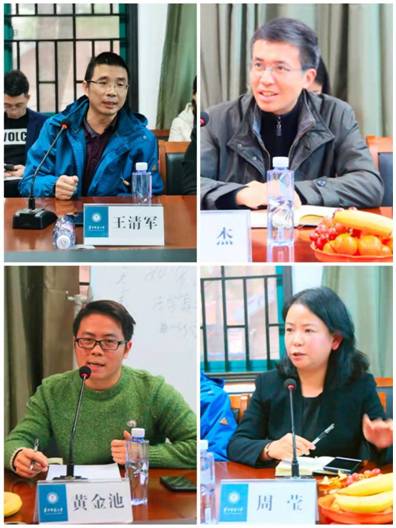 报告正式开始后,应邀参加本次学术沙龙的八位老师依次发言。刘华教授就自己多次主持、指导、评审科研项目的丰富经验谈了两个问题。第一,如何选题?她认为,一个好选题的产生,要处理好申报题目与选题指南、经典问题与当下环境、研究领域与国家机关文件等多方关系 。第二,如何写申报书?申报书的撰写讲究起承转合,注重逻辑,必要时可以辅以图表、重要标识。杨凯教授结合自己申报科研项目的经历分享了宝贵经验。首先,应当对自己的研究方向有清晰的定位,并将其与国家的长期发展、政策相结合;其次,科研申报的前期工作非常重要,深厚的学术积淀是重中之重;最后,杨凯老师谈到,每次申报的过程既是学习的过程,也是一步步站到理论前沿的过程。王清军教授从学术研究和心态培养方面给大家提了三点建议,即“用两条腿走路”、“学会坐冷板凳”和“创新点”。“两条腿走路”是指:确定学术方向和明确学术规划要并行;“学会坐冷板凳”是说学术研究是孤独的。即使石沉大海,也要保持屡败屡战的心态;“创新点”是指不仅需要全面把握研究现状,还要具有新颖的研究方法、视角或内容。接着,文杰教授谈起自己在2004年初次申报科研项目的经历,总结到,项目的申报要抓住“熟”、“新”、“细三个字。申报的项目要是自己熟悉的领域,在框架设计、表达方式、或内容上有所突破。此外,无论是选题还是内容都要反复打磨,避免内容教材化。随后,周莹副教授提出,博士生可以关注社科处的报告,有助于把握有关申报科研项目的规律性内容。此外,她还鼓励大家向经验丰富的教师多请教,从而一点一点提高自己的能力。杨彩霞副教授主要谈了申报法学会科研项目与其他项目的不同之处,比如:法学会的科研项目更具有时效性和针对性、有些项目对年龄有限制等。而王勤副教授从申报时间、前期成果要求和结项标准等方面和大家分享了申报教育部项目的经验,还提到跨学科研究是大势所趋。黄金池讲师谈了大家可能对科研项目申报的几个误区,第一,选题可以是具有时效性的,但其内容一定要来自于自己有前期积累的领域。第二,创新点不仅要有,还要深刻、真切,不能空洞无物。第三,学术研究不区分地域,但不同地区的项目会有各自的偏好。李克武院长听了八位老师的经验分享后谈到:只有考场内的状元,没有考场外的状元,要敢于申报项目、积极申报项目,即使没有成功,在这个过程中也能对自己感兴趣的课题进行学术梳理,从中获益。