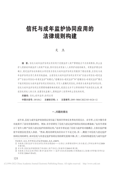 《中国高校社会科学》2022年第3期刊发了我院文杰教授的论文《信托与成年监护协同应用的法律规则构建》。该文研究了信托与成年监护协同应用的必要性和可行性、信托与成年监护协同应用的模式以及信托与成年监护协同应用的规则需求等问题。全文约18000字。