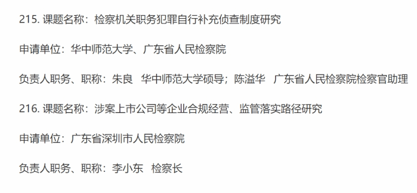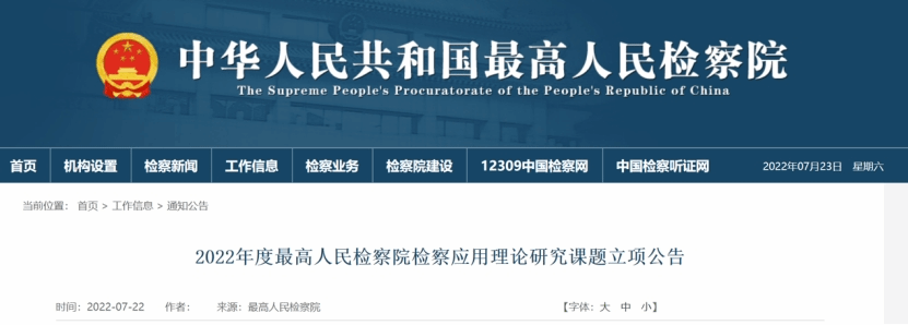 2022年7月22日,最高人民检察院发布了《2022年度最高人民检察院检察应用理论研究课题立项公告》,我院朱良老师联合广东省人民检察院承担的《检察机关职务犯罪自行补充侦查制度研究》课题获批立项。
