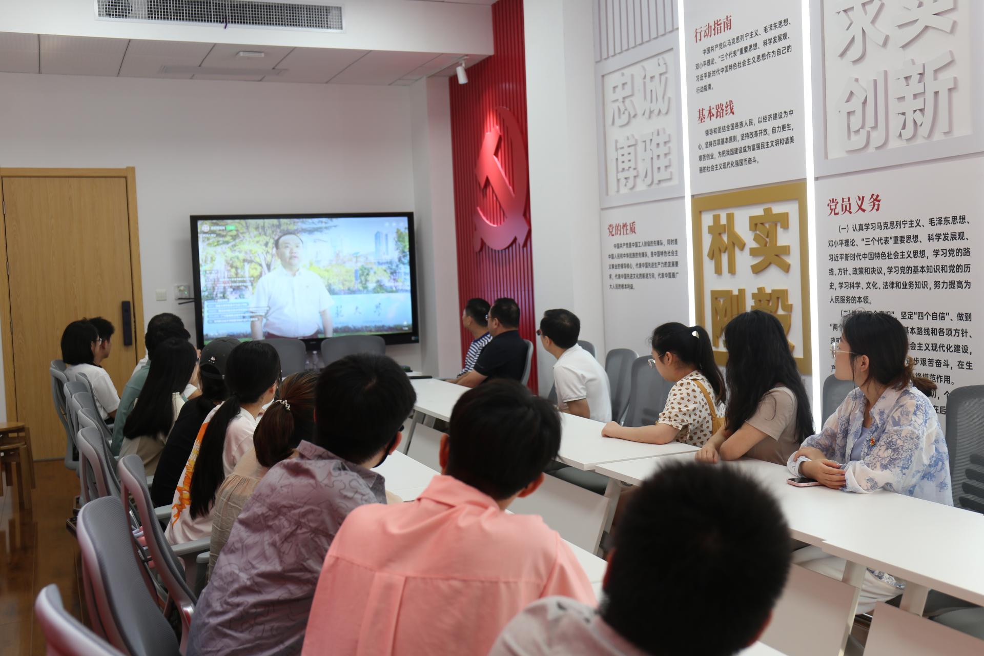 “担当教育新使命,奋进强国新征程”,由教育部思想政治工作司主办,教育部宣传教育中心承办的2024年高校党组织示范微党课第3讲“学深悟透习近平文化思想加快建设社会主义文化强国”于9月19日下午首播。在本次微党课中我校党委书记夏立新主讲,马克思主义学院毛华兵院长和学生党员参与,与南京大学、中国传媒大学、中央音乐学院、华东师范大学、湖南大学师生党员共同探讨高校在文化强国建设中的探索实践。法学院组织师生党员进行观看学习。
