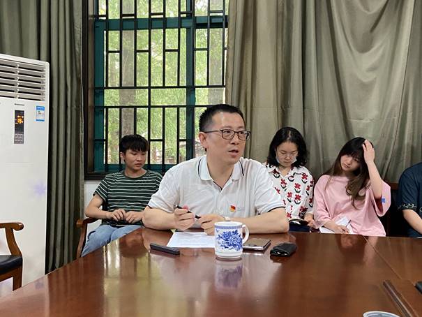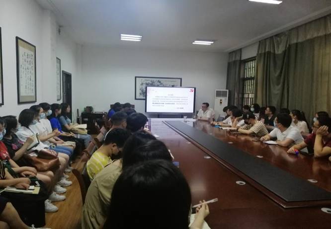 为深入贯彻习近平总书记在全国高校思想政治工作会议精神,加强毕业生党员教育,响应将党史教育融入育人全过程的号召,6月9日下午三点在法学院二楼会议室,院党委书记杨臣以“认识局势、顺势而为、奋发有为”为主题,为法学院全体2021届毕业生党员讲授在校期间最后一堂党课。本次活动由研究生辅导员胡羽主持。