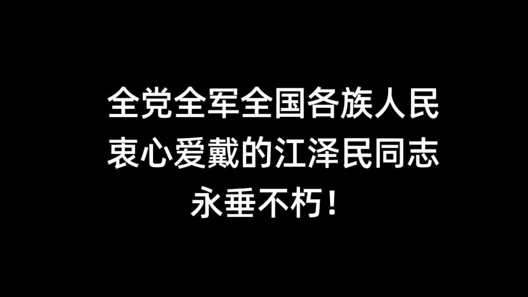 江泽民同志永垂不朽!江泽民同志的一生,是光辉的战斗的一生。在70多年的革命生涯中,他对共产主义理想坚贞不渝,对党和人民无限忠诚,矢志不移为党和人民事业而奋斗。尤其是江泽民同志创立的“三个代表”重要思想,反映了当代世界和中国的发展变化对党和国家工作的新要求,是加强和改进党的建设、推进我国社会主义自我完善和发展的强大理论武器,是中国共产党集体智慧的结晶,是党必须长期坚持的指导思想,是党和人民的宝贵精神财富。我们要化悲痛为力量,继承江泽民同志的遗志,更加自觉地团结在以习近平同志为核心的党中央周围,为全面建设社会主义现代化国家、全面推进中华民族伟大复兴而团结奋斗。