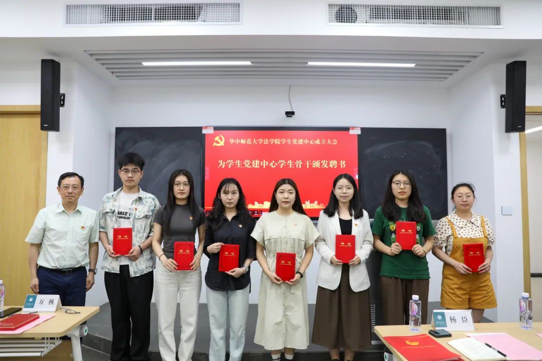 万枞代表学院党委宣读《关于成立华中师范大学法学院学生党建中心的通知》,对中心的工作职责、组织架构以及人员选聘情况进行介绍,并对中心的日常工作提出要求。他强调,要严格落实党内相关制度,进一步加强学生党建工作规范化建设;要开展党支部建设立项,落实学院“7+X”学生党建要求,通过党建工作促进学生全面发展;要加强“支部好案例、书记好党课、党员好故事”常态化培育工作,充分发挥党员先锋模范作用和党支部战斗堡垒作用。希望在学院党委领导下,中心的同志们以主人翁的姿态认真履职,积极工作,大胆创新,推动学院学生党建工作再上新台阶,为进一步提升人才培养质量,推动学院高质量发展贡献力量。