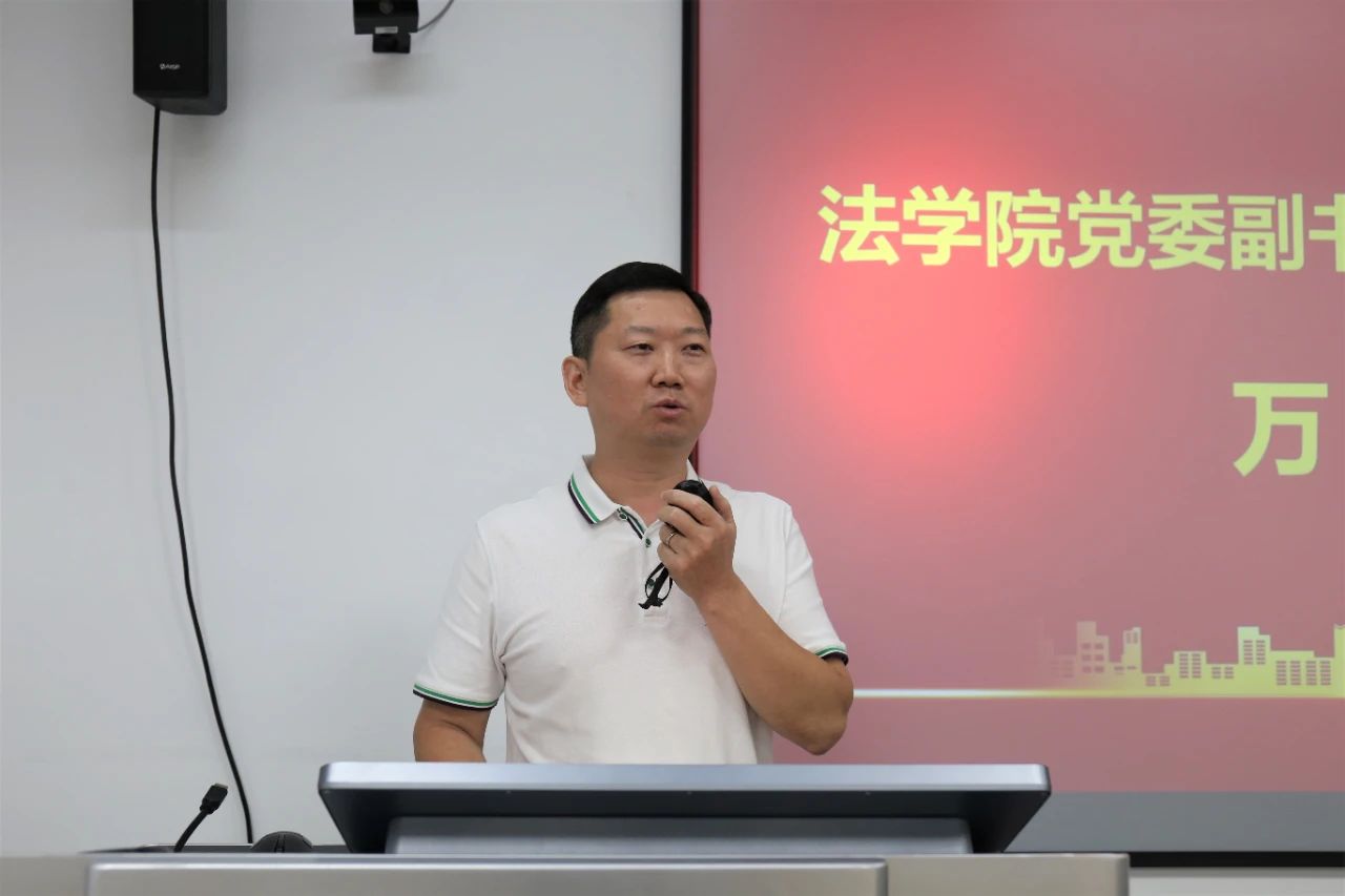 万枞在讲话中要求全体党员从百年未有之大变局和全面推进中国式现代化的角度明确新时代法律人应当肩负的时代责任和历史使命,牢记党员身份,在专业学习、社会实践等方面切实起到表率作用,在服务同学的过程中不断提升综合素质和能力,努力成为具有坚定理想信念、强烈家国情怀、扎实法学根底的法治人才。