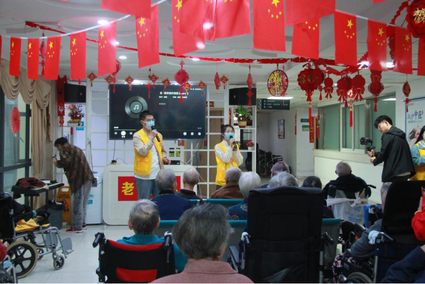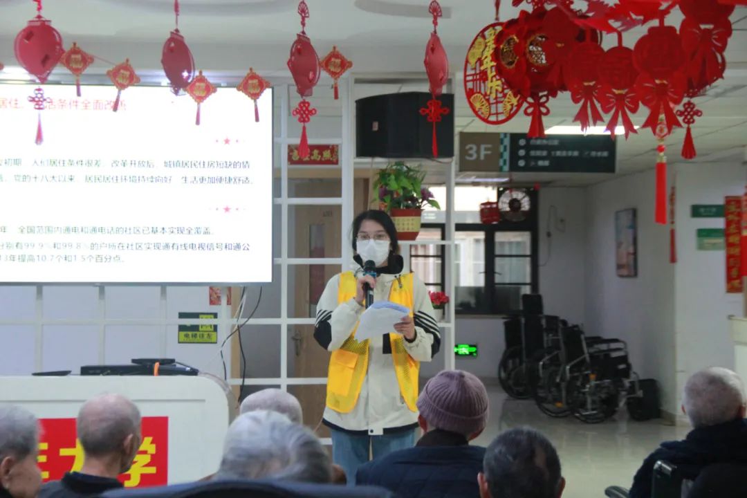 11月9日,华中师范大学法学院青年志愿者协会与法律硕士(法学)第一党支部携手合作,共同走进汉沙养老院,开展“情暖桑榆,爱在金秋”志愿服务活动。活动随着法学院志愿者们的诗朗诵《岁岁重阳,今又重阳》拉开序幕。随后,法律硕士(法学)第一党支部书记徐程和支部党员张甜甜以“共同谱写中国式现代化建设新篇章——庆祝中华人民共和国成立75周年”为主题进行故事分享,向老人们讲述新中国成立以来取得的辉煌成就。