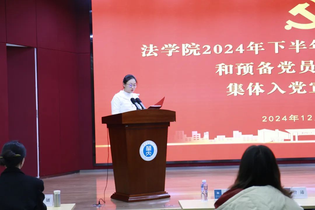 12月26日,我院于文科综合楼一楼报告厅举行2024年下半年新发展预备党员和预备党员入党转正集体入党宣誓仪式。学院党委书记杨臣、党委副书记万枞,教师代表石聚航、周林、姜孝文、王彦舒,党务干事曾谛以及各学生党支部书记,学生党建中心全体成员,全体在校学生党员,入党积极分子代表参加仪式。我院团委书记、学生党建中心副主任张永基主持。