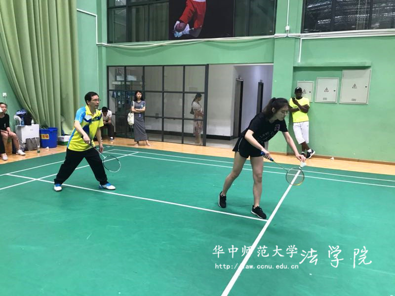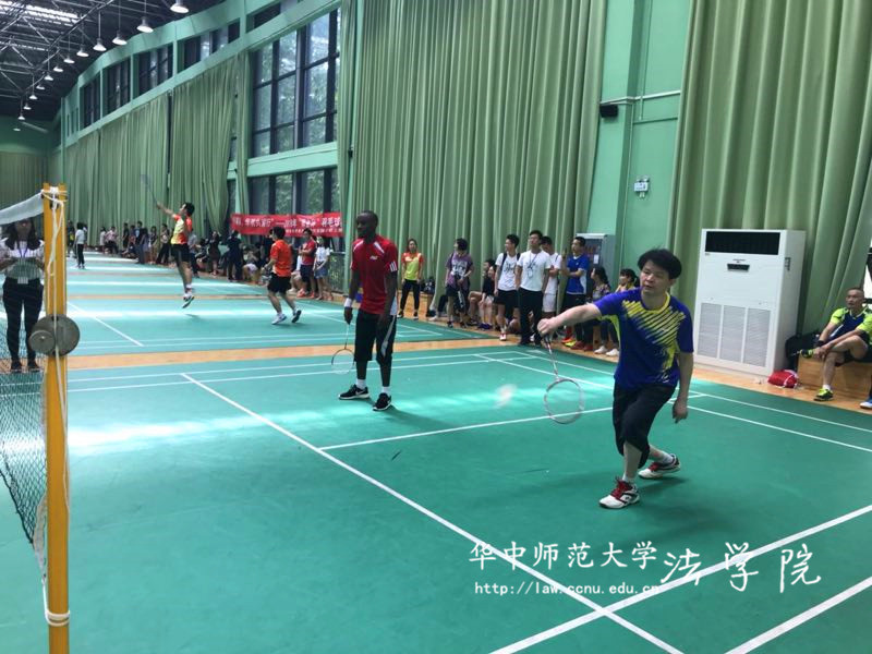 法学院讯 5月26日上午,华中师范大学第三届“师生杯”羽毛球球赛在乒羽中心拉开序幕。我院参赛队伍得到了院党委书记李克武教授、李寿廷副教授和张冠安老师大力支持,印玲俐、程永睿和哈图等六名学生也参与了本次比赛。