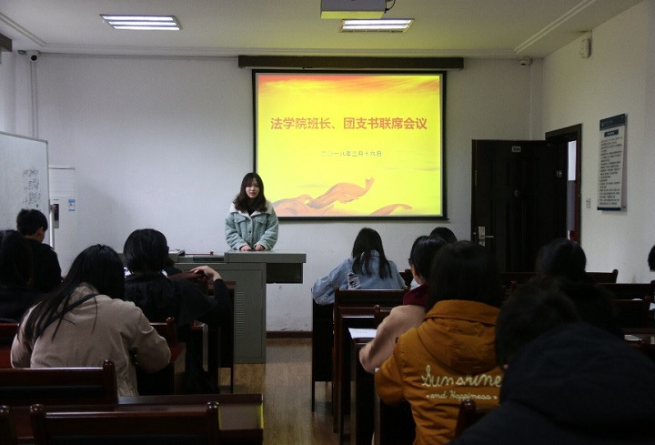 法学院讯(通讯员姚思霏 摄影饶淑华)3月16日午12点30分,由我院组织部组织,组织部成员和我院15、16、17级的各班级的班长和团支书共同参与,在法学院104室举行了本学期第一次班团联席会议。