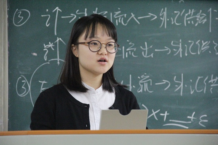 随后,考取四川大学诉讼法专业的研究生莫张倩基于自己的体验,以自己的个人情况为开头,给大家介绍经验。内容涉及前期准备、备考过程以及心得体会。对于考研的前期准备,莫张倩认为首先应确定自己想要考取的目标,做好总体规划;对于备考过程,莫张倩将其分为三大部分,即英语、政治、专业课。她认为应在高效率前提下保证一定的学习时间。同时,莫张倩分享了自己的心得体会,坚持是心态的关键词。最后,她提出,考研学生要勤规划多实践,充分利用时间。