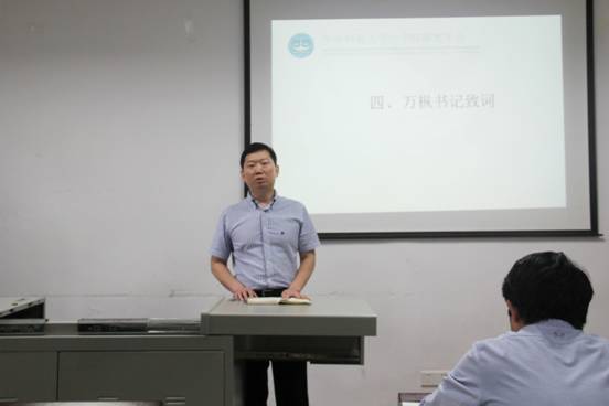 最后,由院党委副书记万枞致辞。万书记指出研会通过举办各种内容丰富、形式多样的活动把研究生这个相对分散的群体聚集起来,具有不可替代的作用。他从做好顶层设计、团结协作、活动有价值等三个方面给出工作建议,提议研会可以积极参与现阶段学院毕业典礼和晚会的策划筹备工作。同时,万书记叮嘱大家一定要协调好个人学习与工作的时间,有困难及时向学院反馈,以促进个人与研会的共同发展。