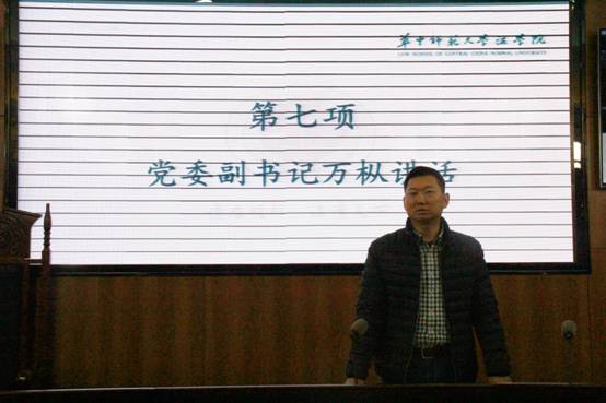 大会最后,党委副书记万枞发表讲话,他指出,“我院取得的成绩值得肯定。各位参与者都完成了本职工作。当代青少年应当做到德智体美劳全面发展,希望同学们将专业学习与课外活动有机结合,这次运动会就是良好的契机。”同时,他也对迎新工作表示了肯定,他指出,学生志愿者在迎新工作中表现出了良好的志愿服务精神和积极向上的法科学子风貌,给新生留下了良好的第一印象,希望通过表彰先进,鼓励更多同学投身志愿服务活动,弘扬“大爱华师”的精神。