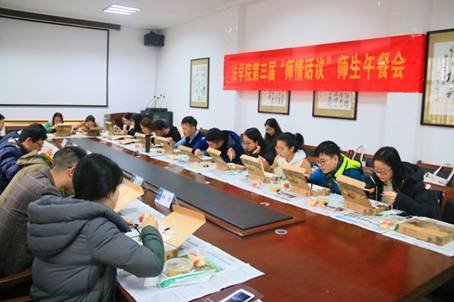 (法学院讯 撰稿:王晶晶 摄影:陈敏)12月23日中午,法学院第三届“师情话议”午餐会在学院二楼会议室举行。院党委书记杨臣、副院长丁文、副书记万枞、法硕中心主任文杰、刑法学导师组组长杨彩霞、知识产权法教研室主任杨涛、研究生辅导员胡羽及13名本科生、研究生代表共进午餐,共话师生情。午餐会由研究生会副主席孙悦主持。