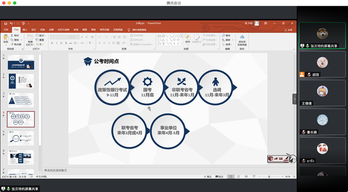 5月15日上午,我院2021届毕业研究生就业经验分享会在腾讯会议举行。研究生辅导员胡羽、毕业研究生代表秦长森、张贝特、白向轩、顿泽宇及2019级研究生参加本次活动。活动由胡羽主持。