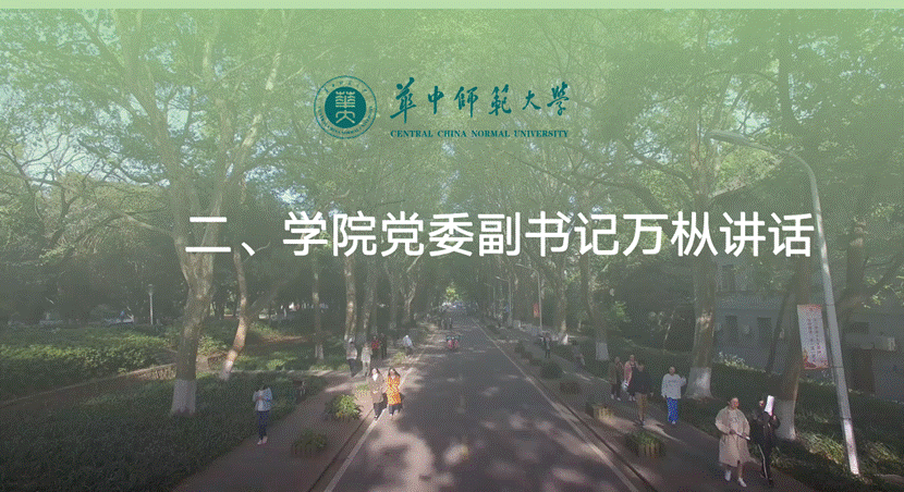活动第二项,党委副书记万枞对同学们成为桂子山上的一名法律人表示了祝贺及欢迎,并提出四点要求。一是严格遵守学校和当地的疫情防控要求,如实报告个人健康信息和到校行程;二是树立规矩意识,严格遵守学校和学院的规章制度;三是做好开启大学生活的准备,尤其要在思想上做好上大学的准备;四是珍惜与父母亲人相处的时光,感恩父母。希望同学们进入大学后能够尽快转换角色,让自己忙起来,学好专业,培养兴趣,全面发展,综合提升,在桂子山法学院度过美好而又富有收获的大学时光。