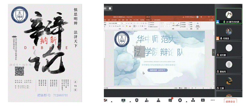 学院辩论队队员代表2020级廖艺杰介绍了法学院辩论队的队员规模、日常训练、历年比赛成绩等基本情况,分享了个人在学院辩论队的成长经历和收获,并鼓励大家积极加入学院辩论队。