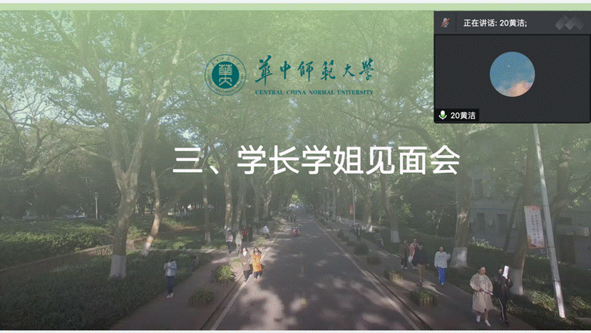 活动第三项是学长学姐见面会。迎新志愿者代表2020级黄洁介绍了迎新工作安排,分享了大学学习的心得体会,鼓励学弟学妹多向学长学姐寻求帮助,并解答了同学们有关迎新志愿服务和大学生活学习方法等方面的疑惑。