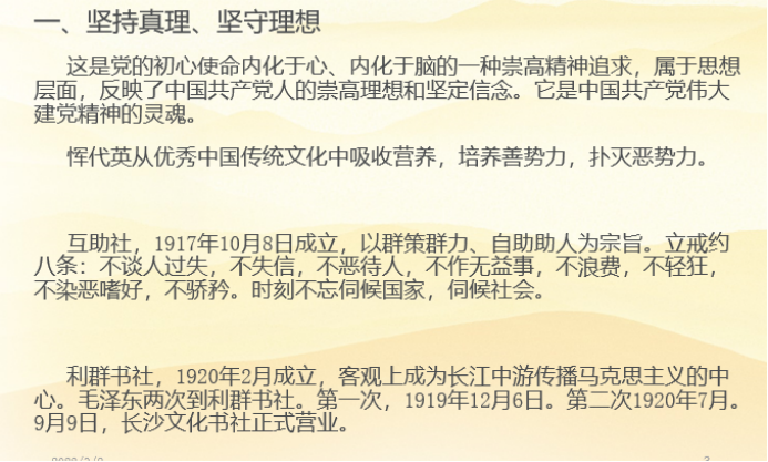 坚持真理、坚守理想。这是党的初心和使命内化于心的精神追求,是伟大建党精神的灵魂。李良民教授回忆恽代英从爱国主义走向共产主义的过程,相继创办了互助社、利群书社、共存社,并逐步认识到只有马克思主义能够救中国。李良明教授感慨,“坚守理想是不容易的”,并鼓励同学们认真学习,坚信中华民族伟大复兴的崇高理想。