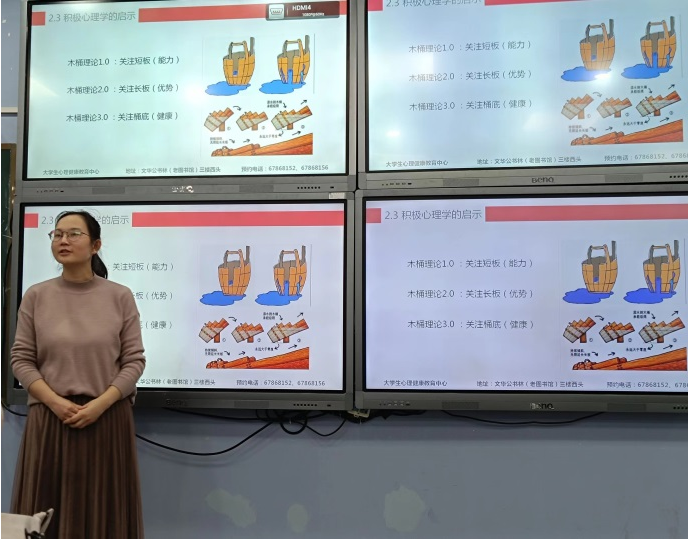第一次培训邀请生命科学学院辅导员、国家二级心理咨询师、湖北省性心理与性教育专家委员会委员余璇主讲,法学院“法苑一家”心理工作站指导老师姜孝文、兼职辅导员樊星锴、柳濛、冷东哲,本研心理委员以及“法苑一家”心理工作站成员参加培训。余璇以“找准定位,从心开始”为主题,结合案例,从角色定位、知识储备、活动策划、朋辈疏导四个部分进行讲授,她强调心理委员在高校心理健康工作中的重要地位,以“木板理论”入手指出各班级心理委员不仅要看到木桶的短板和长版,更应该要重视桶底。