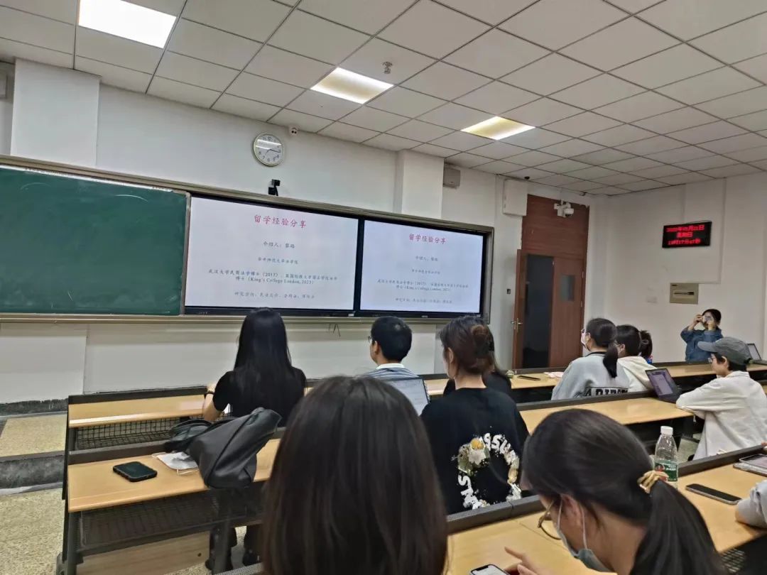 法学院讯(通讯员 黄清婷 权莉娜)为了深入开展学习贯彻习近平新时代中国特色社会主义思想主题教育,拓宽学生国际视野,5月21日,灋行学习发展中心在8416教室召开“助力留学,逐梦起航”出国留学经验分享会。学院教师曹奕阳、黎珞和2020本科生辅导员柳濛出席分享会,特邀嘉宾黎珞和主讲人颜家妍(19级法学)、任海柔(19级法经·法学方向)、黄子黎(19级法经·经济学方向)和齐宇璇(2023春季台湾交换生)分别就自身海外留学经历或留学申请经验展开分享。2003班班长宋晴主持分享会。