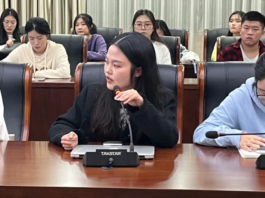 研究生团总支原副书记李文杰、实践部原负责人刘埸淇、第十一届研究生会主席团成员张羽馨、尹训璞以及第十一届研究生会学术部负责人郭吕龙依次发言,对新加入的同学表示了欢迎。他们根据自身的工作经历,带大家回顾了研会去年的工作成果,做出了具体分析,并从不同角度分享了自己的学生工作心得。