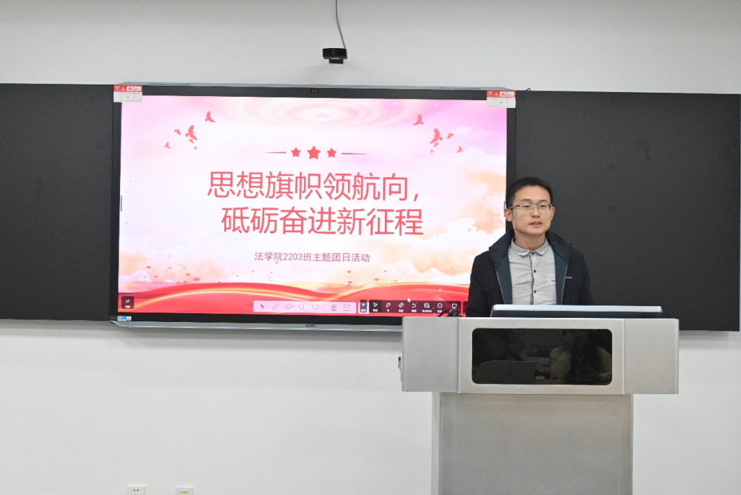 10月20日,2203团支部团日活动,本次会议由冯春妮主持。本月团日活动以思想旗帜为主题,从同学们对《红船,从南湖启航》富有感情的诵读中开始。随后,冯春妮针对本次团日活动主题进行了学习分享,指出广大青年应坚持学习习近平新时代中国特色社会主义思想的核心要义,不断增进对党的政治认同、思想认同、理论认同和情感认同。
