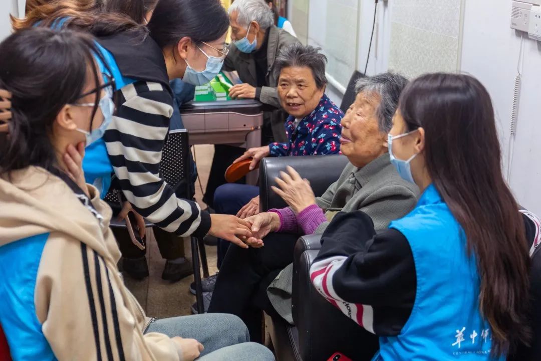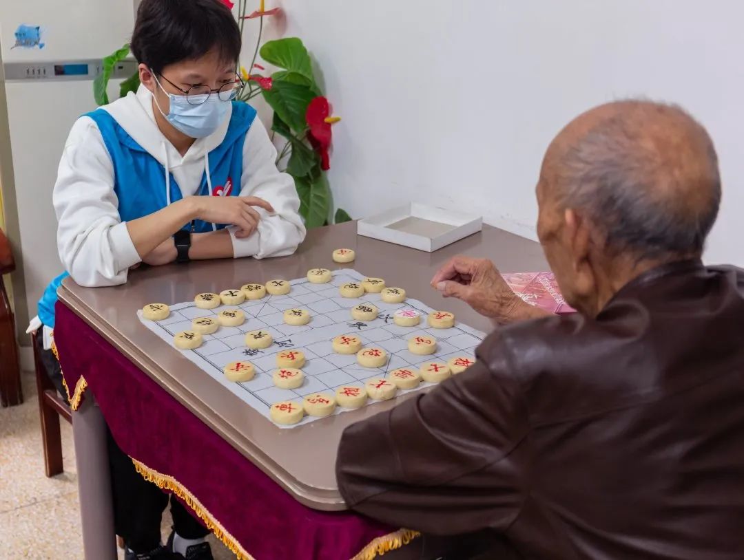 表演结束后,志愿者们走到老人身边,给予温暖关怀与陪伴,或亲切话家常,倾听老一辈人的故事;或沉下心与爷爷下一盘象棋,感受棋局奥妙。最后,志愿者们与爷爷奶奶互相祝福,依依惜别。