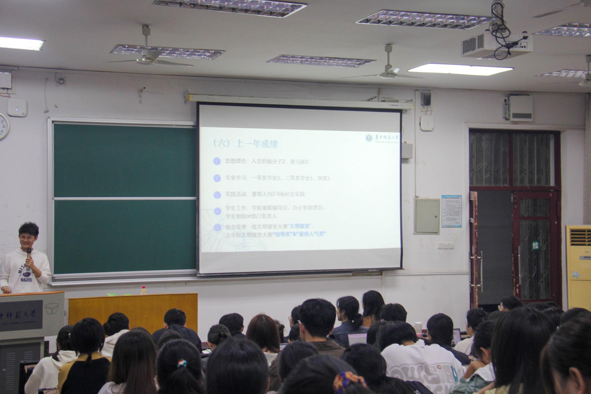 法学院讯(记者 年晨曦 张永敏)为发挥学生寝室心理育人和管理育人功能,促进学生自我管理、自我教育及自我服务,更好地发挥寝室长的模范作用,有效实现寝室的自我管理,10月27日晚,法学院 “法苑一家”心理健康教育工作站主办的“知心同行,用爱护航”寝室长朋辈助人培训班开班仪式暨专题讲座在7号楼7101举行。本次开班邀请了华中师范大学大学生心理健康教育中心专职教师、心理咨询师、心理学博士、心理卫生协会团体团体咨询专委会委员陈真珍做专题讲座。法学院本科生辅导员姜孝文、柳濛、冷东哲,研究生辅导员张永基、樊星锴,本研全体寝室长、心理委员,心理工作站成员参加开班仪式暨专题讲座。