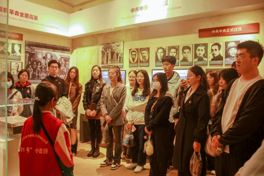 在“61号”小红伢志愿者们带领下,同学们依次参观了馆内的珍贵文物和陈列,包括任作民同志使用过的皮箱、长江书店出版的《中国青年》,中共中央政治局常委会会议室、中共中央秘书厅办公室等复原陈列等,了解了其背后的故事。通过这些历史实物、照片、档案等,同学们回顾了中共中央在武汉领导的波澜壮阔的革命斗争,接受了一堂有声有色、生动的党史和爱国主义教育课。