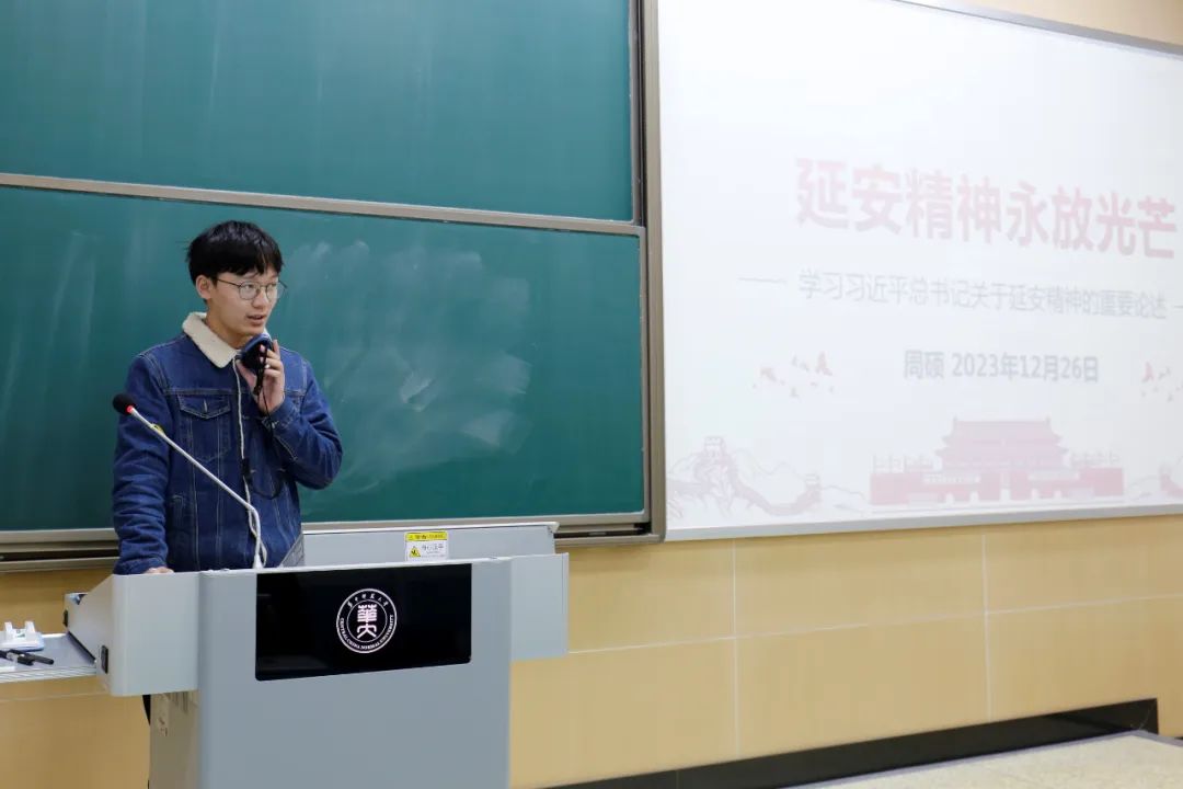 法学院2023年“青马工程”培养班成员周硕作以《延安精神永放光芒》为题的理论宣讲,他结合自己在延安实地考察与学习的经历,带领大家学习习近平总书记关于延安精神的重要论述,并鼓励同学们积极发扬自力更生、艰苦奋斗的延安精神。
