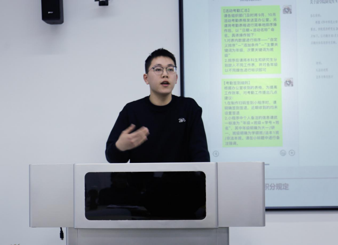 在评议会上,各部门成员首先分别进行个人工作汇报,结合本学期的部门工作经历,总结了自身工作中的亮点与不足,并对下一学期部门建设提出了相关建议。随后,研究生团总支组织部、实践部、研究生会办公室、学术部、文艺部、生活权益部、体育部等各部门负责人依次进行部门工作汇报,总结工作成绩和不足,以及下学期的工作思路。