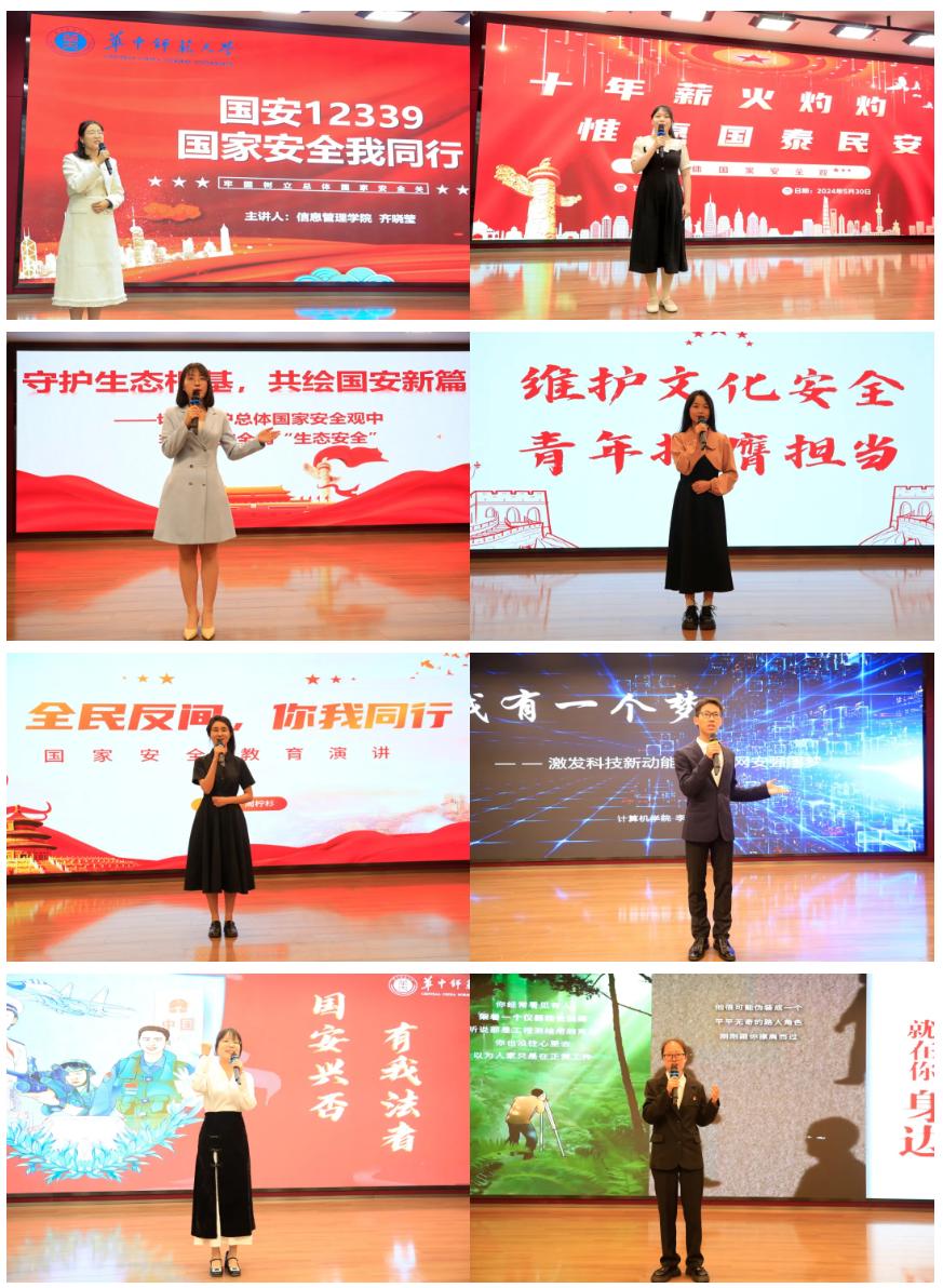 华中师范大学高度重视国家安全宣传教育工作,此次国家安全主题教育演讲比赛,是今年4·15全民国家安全教育日系列活动之一。此前,学校各单位组织学生开展了国家安全教育日主题党、团日学习活动,保卫处、学工部、保密办、信息化办、法学院面向全校师生联合举办了“国家安全日”主题游园会、国家安全法治宣传进课堂、国家安全网络答题等系列活动,以广度覆盖、深度拓展、创新挖掘为宣教目标,全面提高师生国家安全意识,汇聚力量,筑牢人民防线“钢铁长城”。