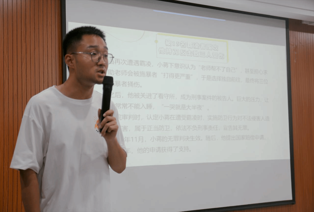 团队成员将案例改编成特色剧本,动员各年级学生积极参与,由师生共同演绎校园欺凌的场景,学生们通过观看情景剧,深刻认识到校园欺凌的严重危害。主讲人黄龙宇以案说法,以案释法,深度剖析真实发生在校园里的诸多欺凌事件,从认识类型、预防措施以及应对举措等多重维度向学生普及校园欺凌的相关知识,引导同学们不要成为校园欺凌的受害者、欺凌者和旁观者,增强学生的法治观念,提高自护意识。