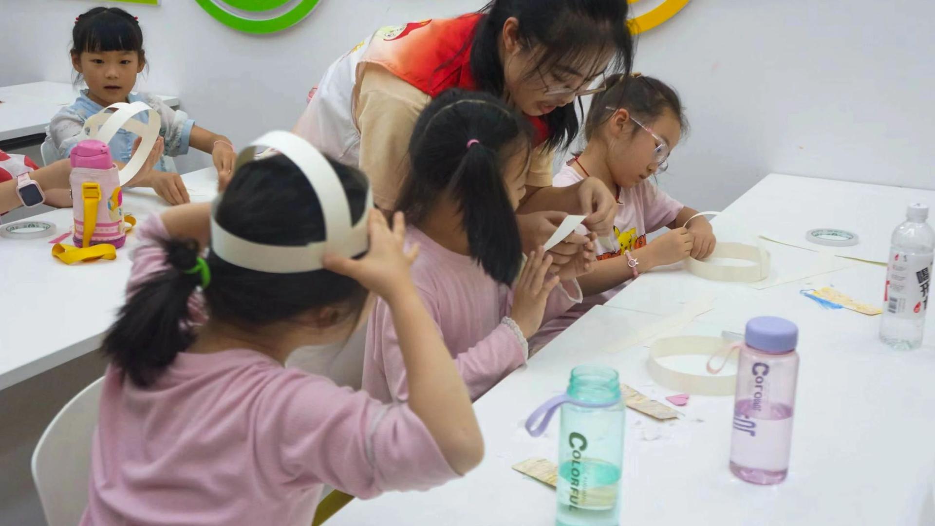 在志愿者的演示与指导下,孩子们开始了“假发”制作的探索之旅。他们仔细观察、认真聆听,并发挥各自的想象力与创造力,时而埋头苦干,时而与小伙伴们交流心得。从剪裁彩纸到缝制毛线,再到粘贴装饰品,孩子们手法逐渐娴熟,每个步骤都认真对待。最终,一顶顶独特的手工“假发”逐渐成型,有的是卡通角色的造型,有的融入了现代元素。他们将自己制作的“假发”进行展示、相互分享,与志愿者共同记录这一快乐的时光。