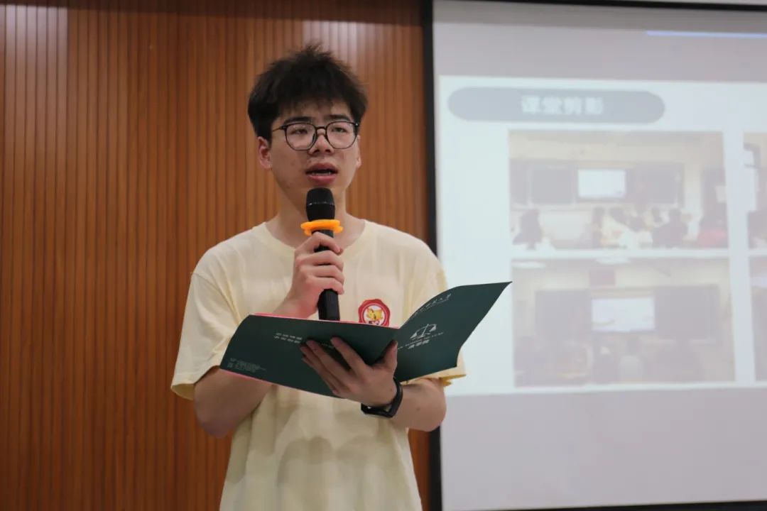服务队队长林彦晨对本次志愿服务活动作总结汇报,回顾了服务队所开展的系列活动。本次七彩假期,服务队以学业辅导、素质拓展为主体,以红色教育、法治教育为特色,共开设10门课程;发挥专业优势,组织“模拟法庭”“法治情景剧”“法治游园会”“西柏坡精神宣讲”等特色活动;同时积极参加百所观察、送法下乡。