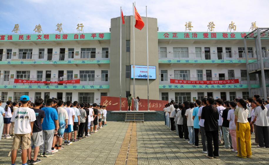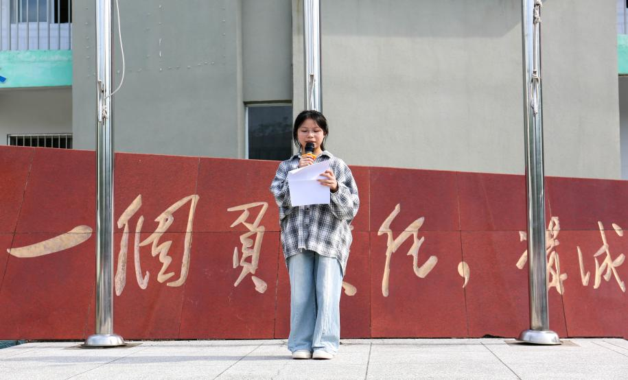 首先进行的是升旗仪式,随后,来自资市中学的七年级的黄舒欣同学代表全体参与“七彩假期”的学生进行国旗下的讲话,她向志愿队老师们的到来表达感谢,希望在接下来的两周时光里能够学习更多知识,度过难忘的暑假时光。