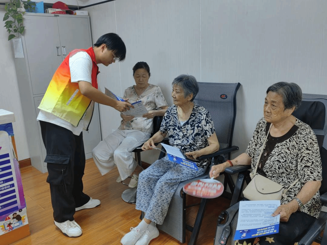 防范于心,反诈于行。实践团成员们走进融侨华府社区老年人服务中心,分发预防电信诈骗的宣传册,向老人们介绍常见的养老服务骗局,并结合真实的案例,讲解诈骗手法和套路,揭露电信诈骗真面目,帮助社区老人学习防骗识骗技巧,引导树立安全思维,保持警惕心理,避免陷入养老服务诈骗,提高防范电信网络诈骗的能力,增强自我保护和防骗意识,筑牢反诈思想“防火墙”。
