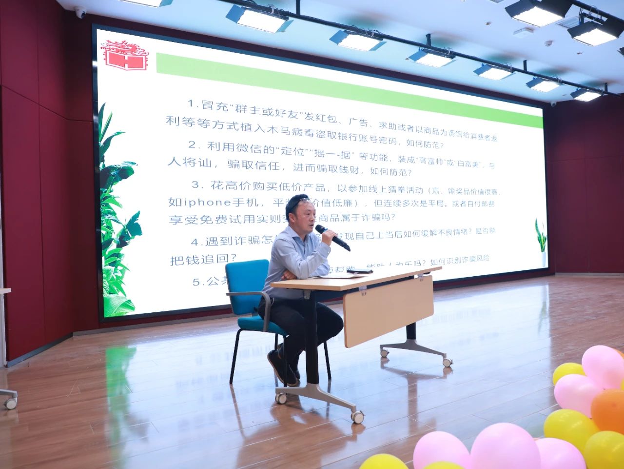 潘劲松深入剖析了大学生易遭诈骗的原因,介绍了多种防诈骗情形,如冒充“群主或好友”植入木马病毒、利用微信功能伪装身份骗取钱财、线上抽奖骗局等,并逐一给出防范策略。