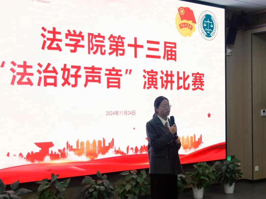 本次比赛以“咏法治情怀,颂时代赞歌”为主题,围绕“法治轨道下的高质量发展”“法治对教育强国的意义”“校园普法”三个选题展开。11名选手或是结合自己的亲身经历,或是立足国家方针政策,向观众讲述了自己的所思所悟。