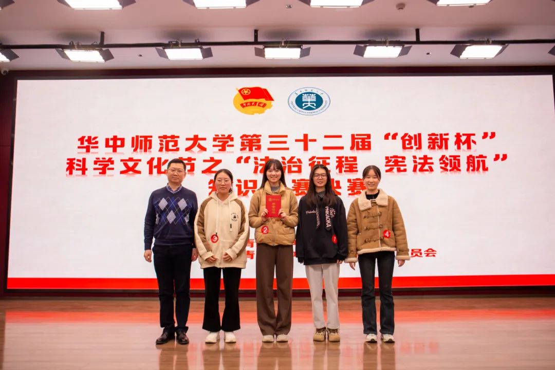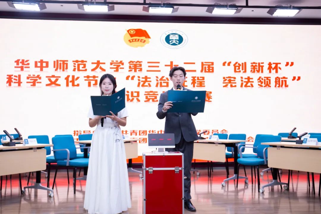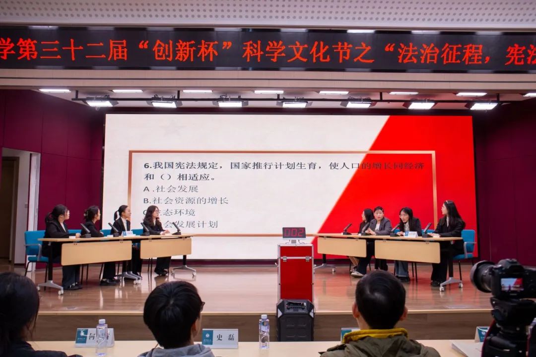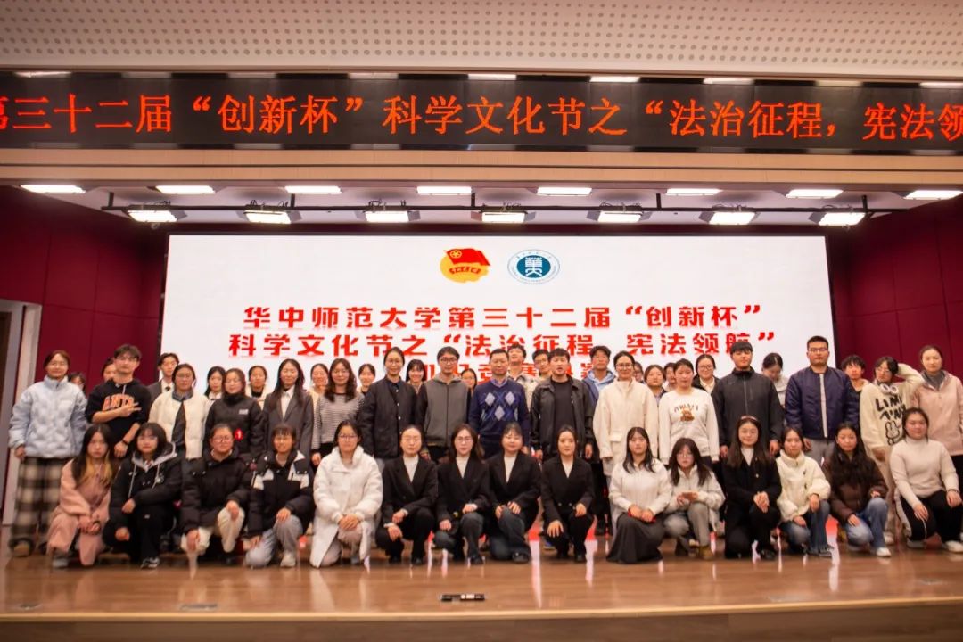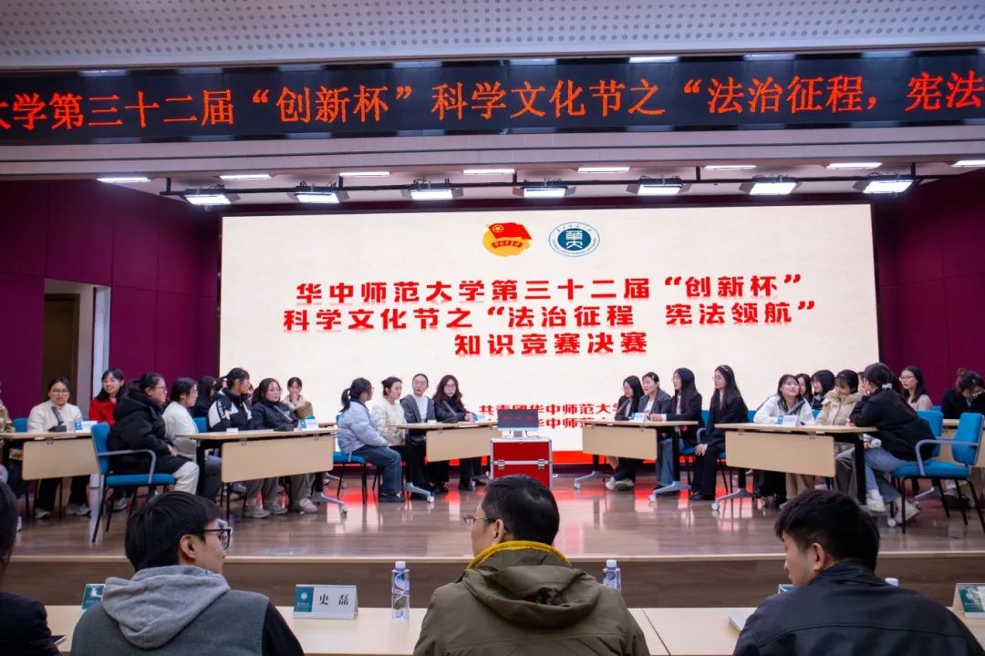 在第十一个宪法日来临之际,为进一步弘扬宪法精神,维护宪法权威,推动全校形成尊崇宪法、学习宪法、遵守宪法、维护宪法、运用宪法的氛围,丰富同学们的宪法基本知识,12月8日,法学院开展华中师范大学第三十二届“创新杯”科学文化节之“法治征程,宪法领航”知识竞赛决赛。法学院党委副书记万枞、教育学院团委书记史磊、法学院团委书记张永基、法学院团委副书记何青苗、本科生辅导员姜孝文、研究生辅导员陈志超、本科生辅导员张龙、校研究生会主席团成员李甜、校学生会主席团成员蒋妍出席活动。