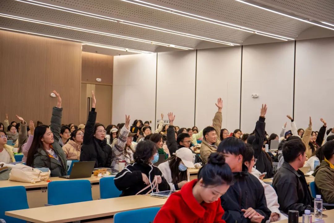 观众互动环节,现场随机抽取观众作答宪法有关的题目,答对便能赢取精美礼品,同学们踊跃举手,气氛十分热烈,大家都沉浸式体验在这场集知识性、教育性于一体的知识盛宴中。