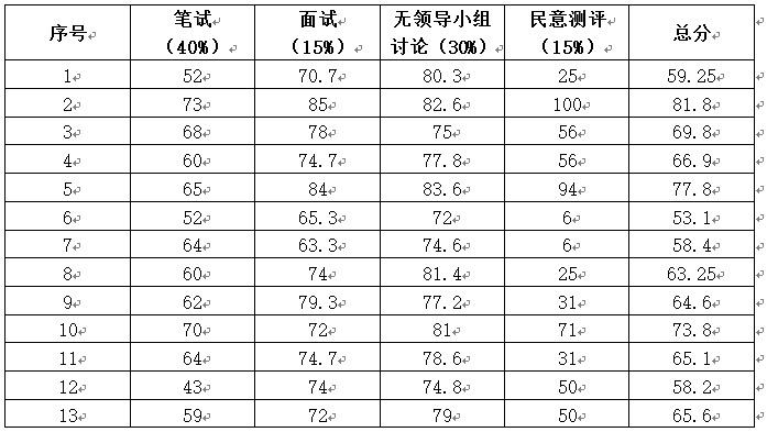 经本人申请,公开竞选,现将法学院第四届团委学生会主席团换届笔试、面试成绩公布如下: