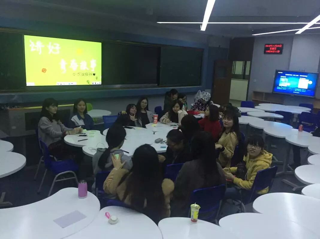 法学院讯(通讯员 左进玮)11月20日晚七点,法学院15级法经班在8505教室开展了11月份“讲好青春故事”主题团日活动第一部分。15级法经班全体同学以及班主任肖登辉老师参与了本次团日活动。