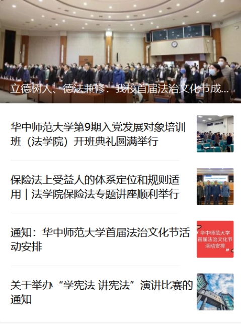 3.结合法学学科特色,打造校园法治品牌。在法学院的领导下,研究生会于2021年12月3日至12月24日举行了历时21天的华中师范大学首届法治文化节。开幕式主题演讲、法律展板展示、宪法游园会、法治宣讲团等系列活动,面向全校同学普及法治思想,成功打造了独具特色的法治校园教育。