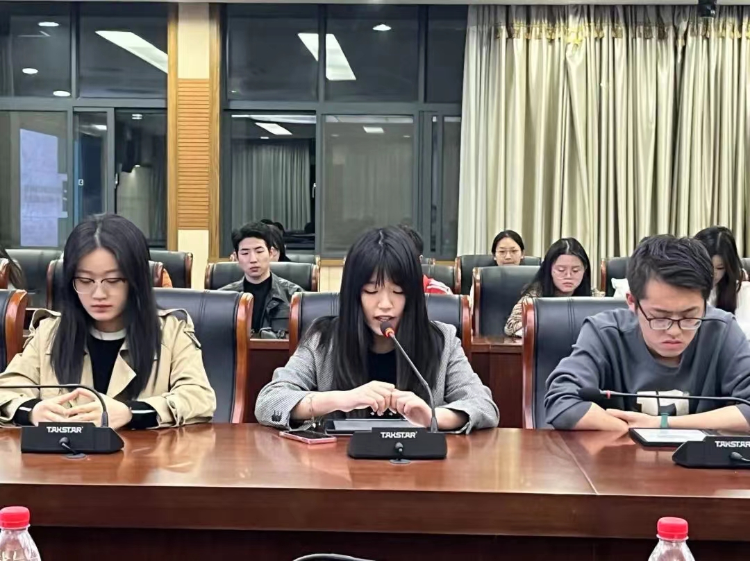 研究生团总支原副书记李文杰、实践部原负责人刘埸淇、第十一届研究生会主席团成员张羽馨、尹训璞以及第十一届研究生会学术部负责人郭吕龙依次发言,对新加入的同学表示了欢迎。他们根据自身的工作经历,带大家回顾了研会去年的工作成果,做出了具体分析,并从不同角度分享了自己的学生工作心得。