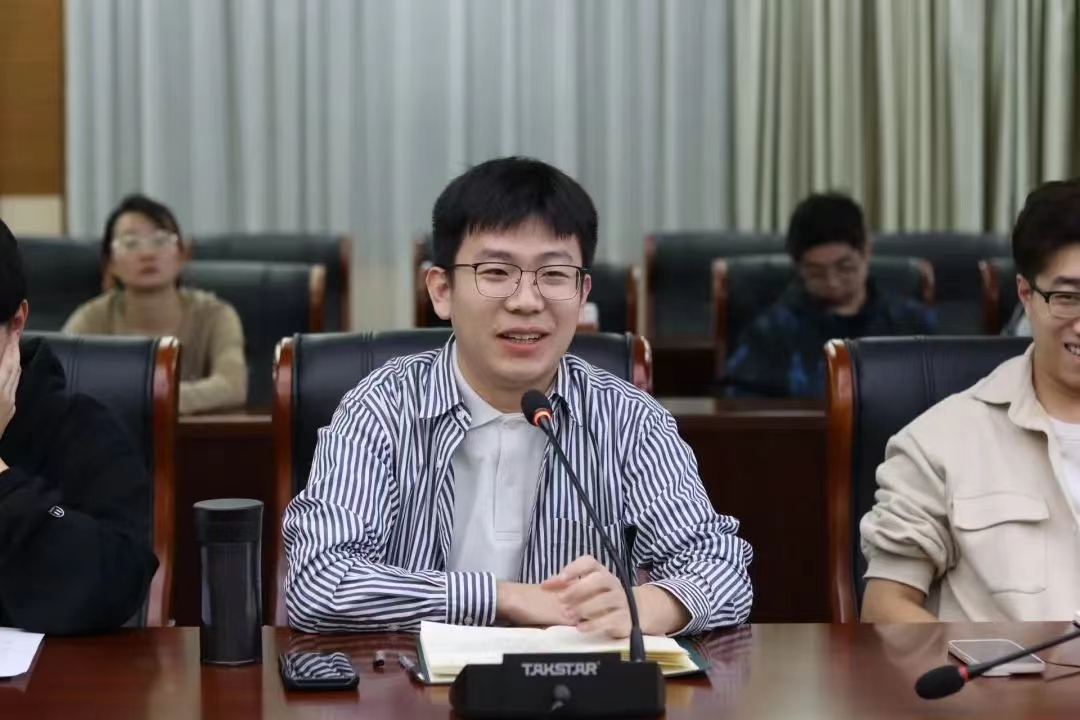 研究生团总支副书记冷东哲,第十二届研究生会主席团成员穆德升、樊星锴、董升依次发言,他们总结了自己去年一年在研会的工作经验和心得体会,对团学骨干成员表示鼓励和期待。