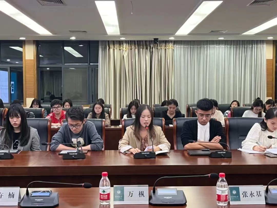会议最后,学院党委副书记万枞发表讲话强调,团总支研会成员要实事求是开展工作,从“育人”高度认识自己的工作,明确岗位职责、流程、任务、规章制度、有方案、抓落实脚踏实地落到实处。同时期望同学们能够更好围绕法学专业特色开展特色活动。在强化干部自身能力的同时,要着力满足同学们的发展需求,打造丰富文化生活,营造更好的文化氛围,切实提升同学们在桂子山上的获得感和幸福感。