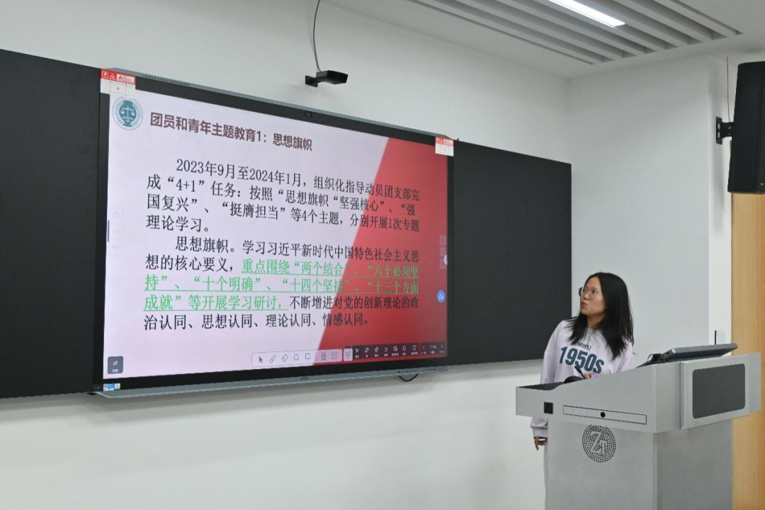 10月20日,2203团支部团日活动,本次会议由冯春妮主持。本月团日活动以思想旗帜为主题,从同学们对《红船,从南湖启航》富有感情的诵读中开始。随后,冯春妮针对本次团日活动主题进行了学习分享,指出广大青年应坚持学习习近平新时代中国特色社会主义思想的核心要义,不断增进对党的政治认同、思想认同、理论认同和情感认同。