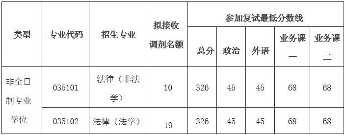 注:法律(非法学)专业只接收第一志愿报考法律(非法学)专业考生,法律(法学)专业只接收第一志愿报考法律(法学)专业考生。