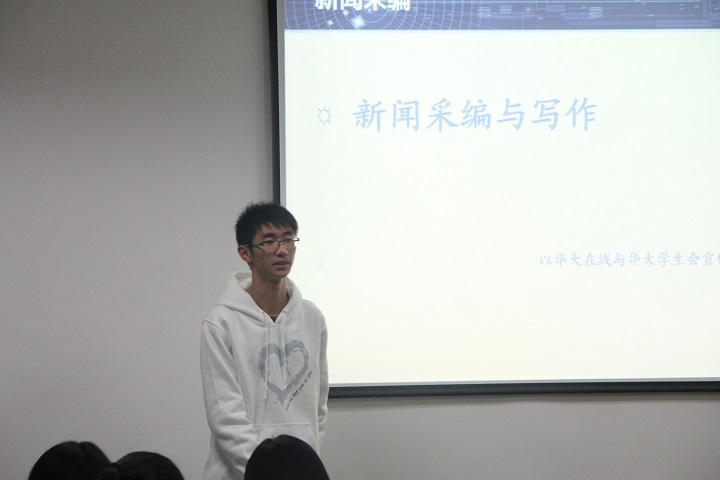随后,王棣就新闻宣传这一主题展开了本次授课的后半部分讲授。首先,他具体阐述了新闻采编与写作的技巧,通过对会议类写作,活动类写作,讲座类写作及人物通讯这四个新闻类型具体写作方法的探讨,指出不同新闻要写出不同风格并列出标准的写作模板供学员参考。理论知识讲完后,他还就法学院新闻宣传中心三位通讯员的新闻稿进行现场点评,将理论付诸实践。之后,他就法学院新媒体建设提出自己的意见,他讲到,法学院的新媒体建设正处于上升阶段,同学们要通过关注直播等方式扩大学院影响力,增强媒体吸引力。